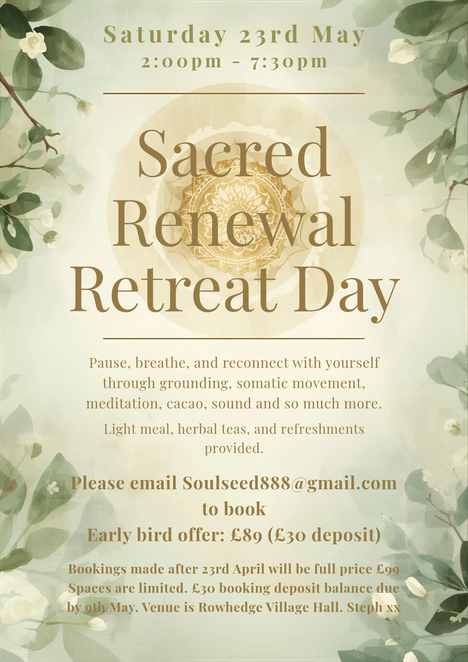 This half day retreat is an invitation to pause, breathe, and reconnect with yourself.